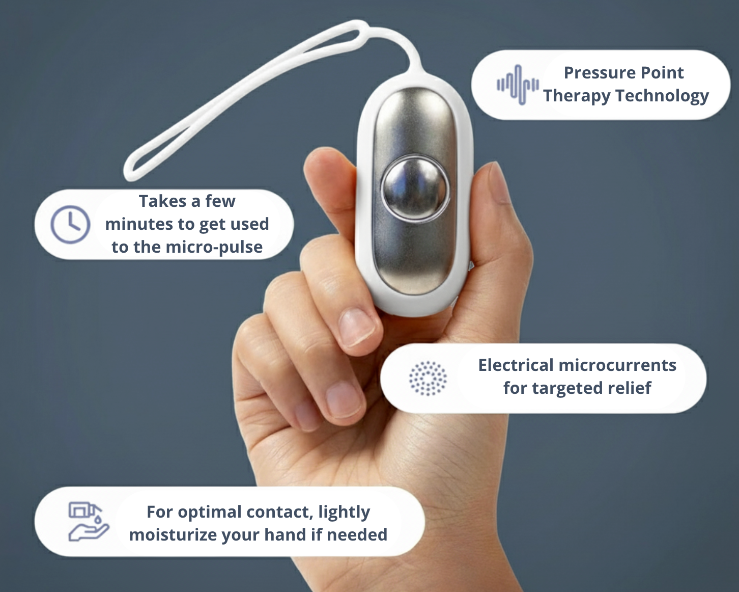 Feel noticeably more relaxed within minutes through gentle micro-stimulation.